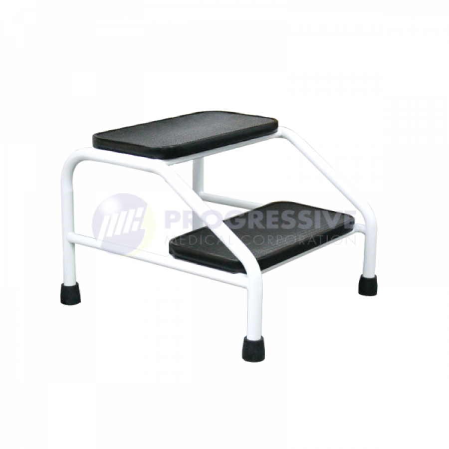 Steps have a skid resistant rubber mat surface