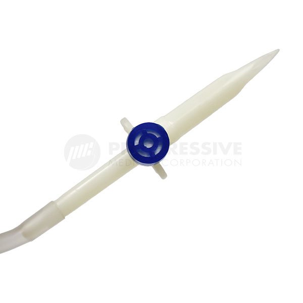 - Sharp vented spike with 170cm clear tubing