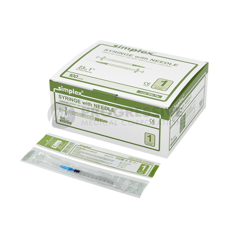 Simplex Disposable Syringe with Needle 1cc, G-23 X 1” is